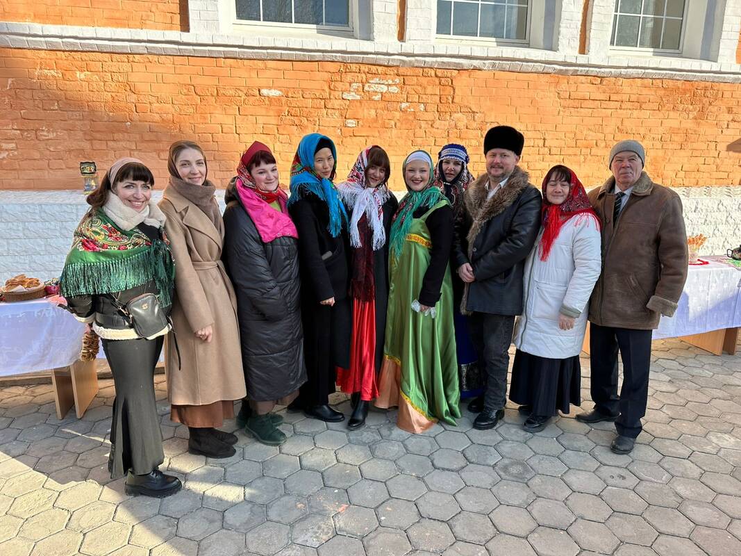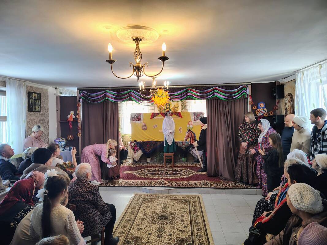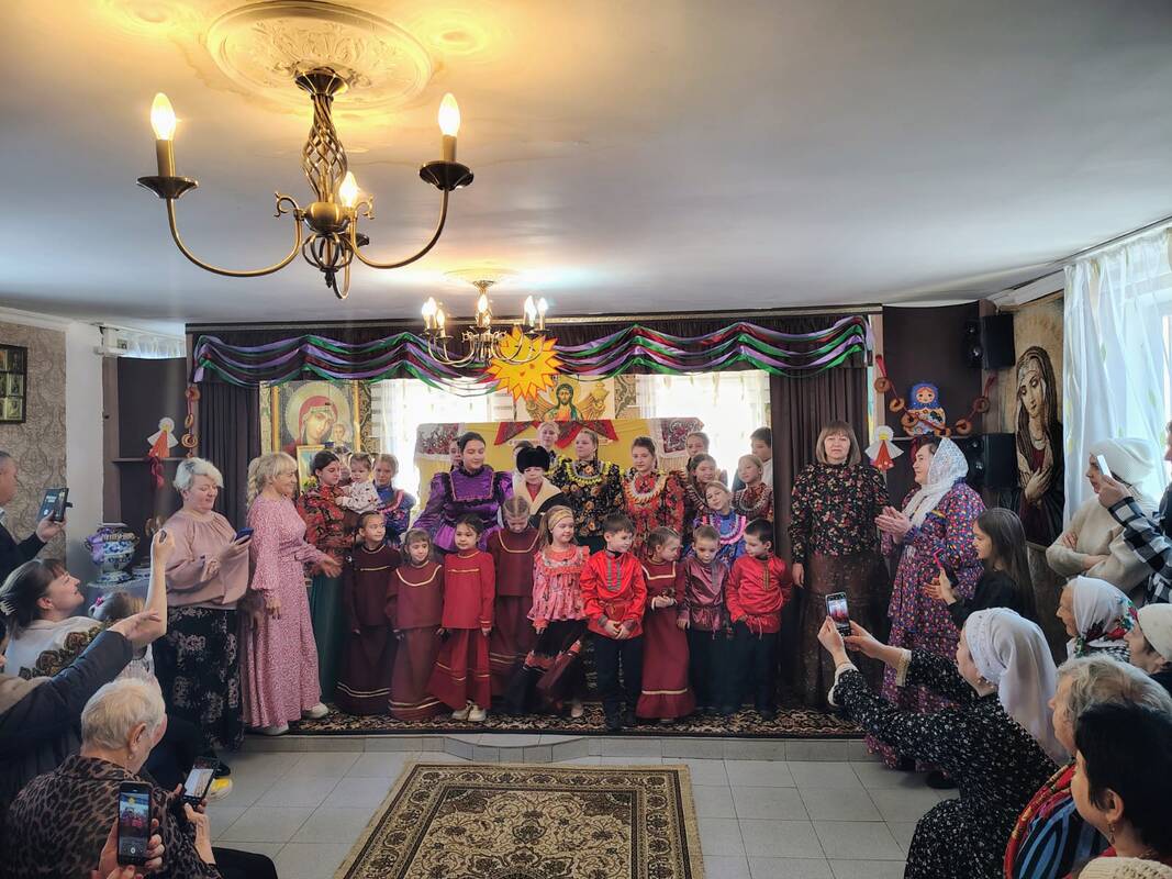 Преподаватели с воспитаниками воскресной школы приготовили программу со стихами и народными песнопениями, посвящёнными Масленице.