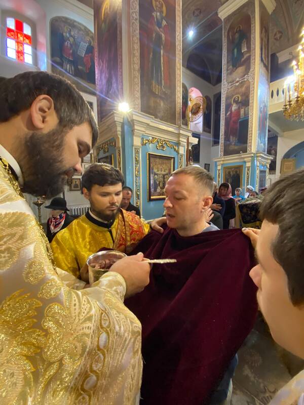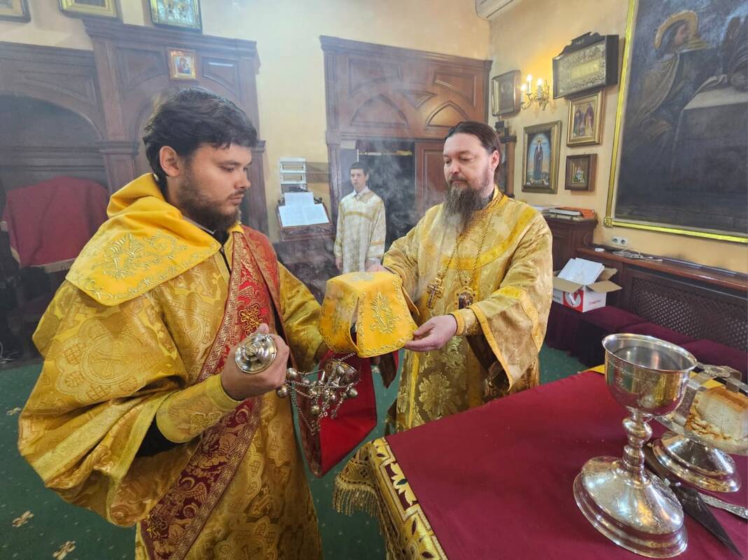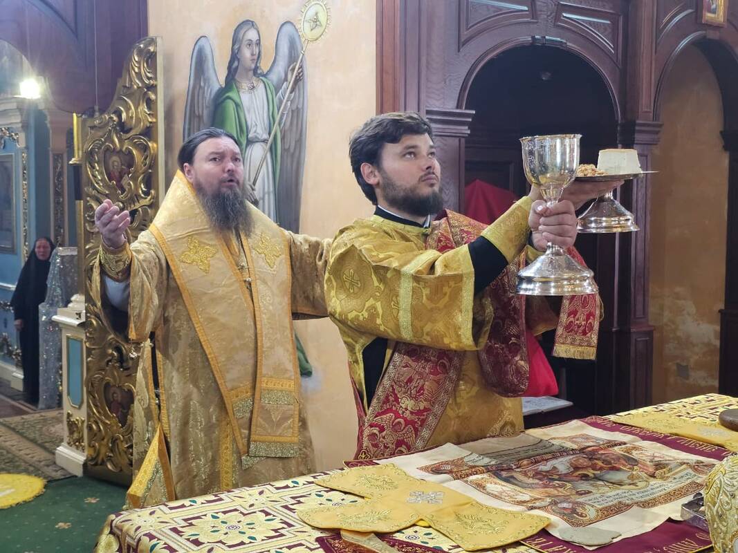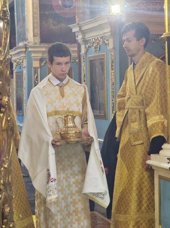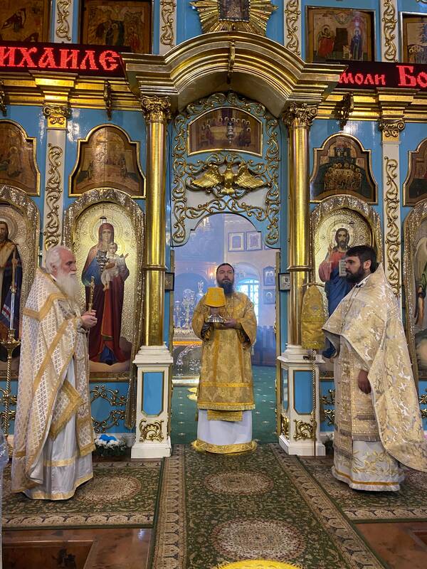 Его Преосвященству сослужили: настоятель кафедрального собора Михаила Архангела г.Уральска, архимандрит Феодосий (Курьянов), клирики кафедрального собора: протоиерей Георгий Лемачко, диакон Владимир Лемачко.