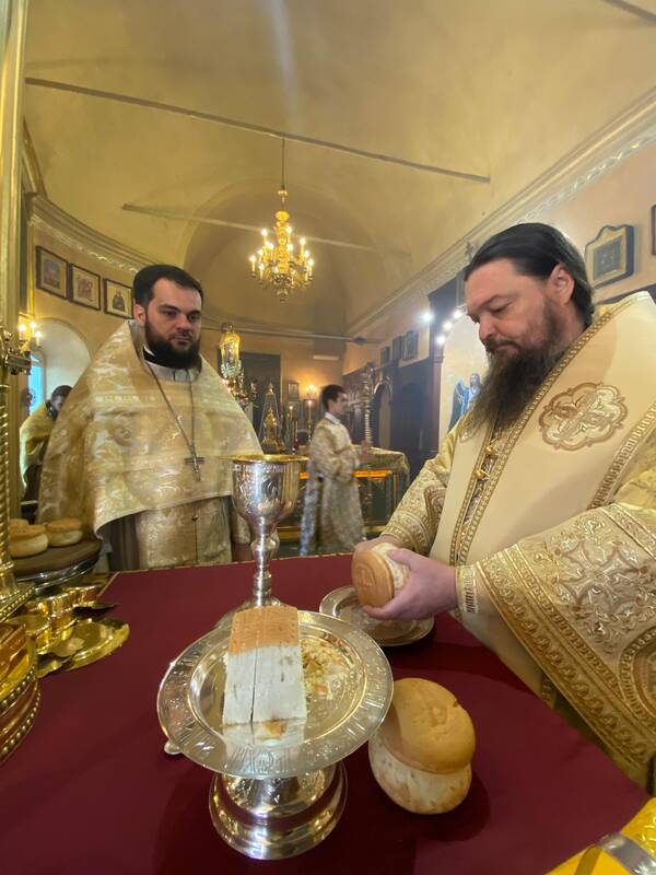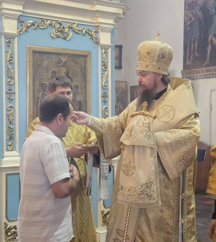 Накануне владыка Вианор совершил всенощное бдение и на богослужении Утрени помазал молящихся освященным елеем.