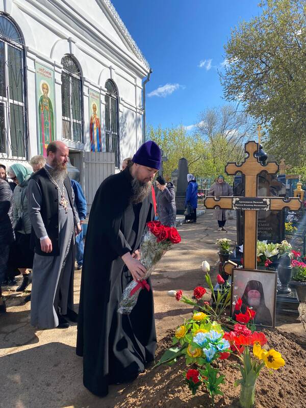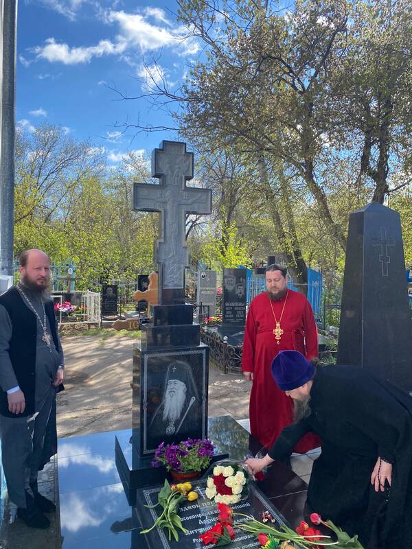 По окончании Литургии была совершена лития у могилы архипастыря и возложены букеты живых цветов.
