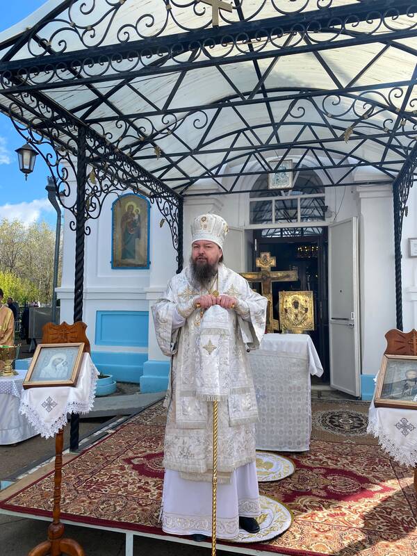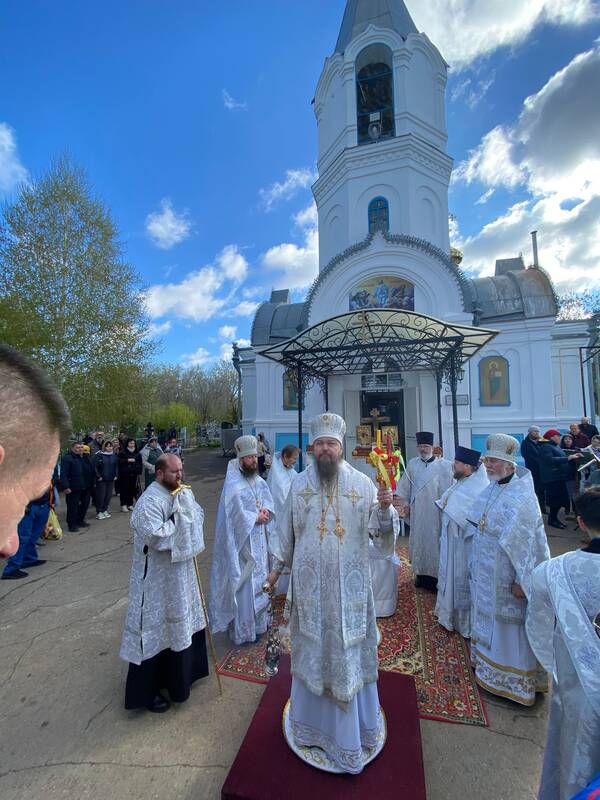 В завершении Богослужения Его Преосвященство поздравил со Светлым Христовым Воскресением, поблагодарил духовенство и прихожан за добрые слова и пожелания, преподал архиерейское благословение и окропил освященной водой.