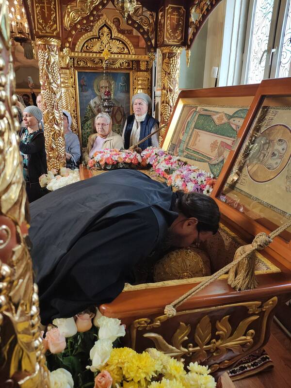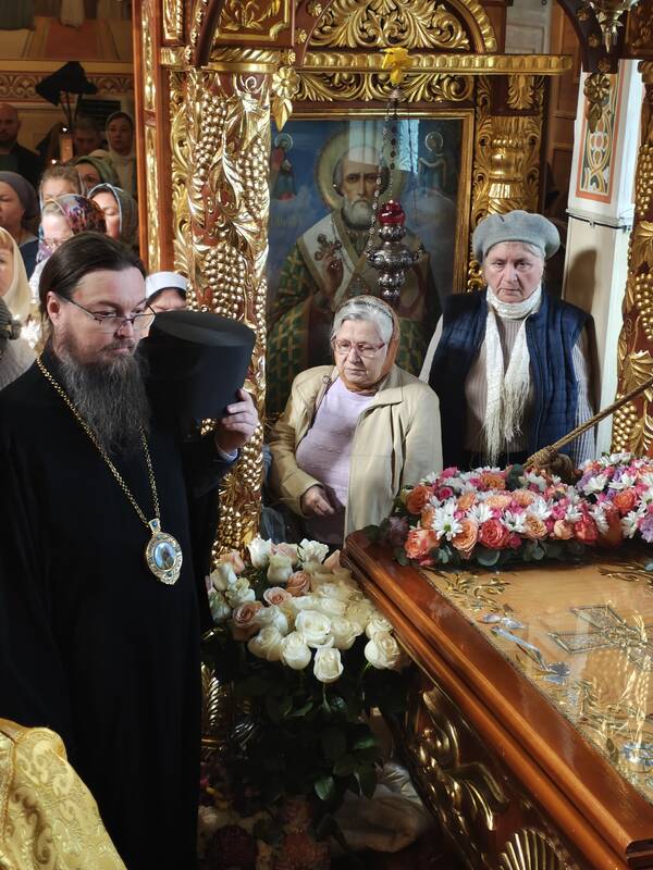 По отпусте Литургии состоялось славление священноисповеднику Николаю перед ракой с его честными мощами.