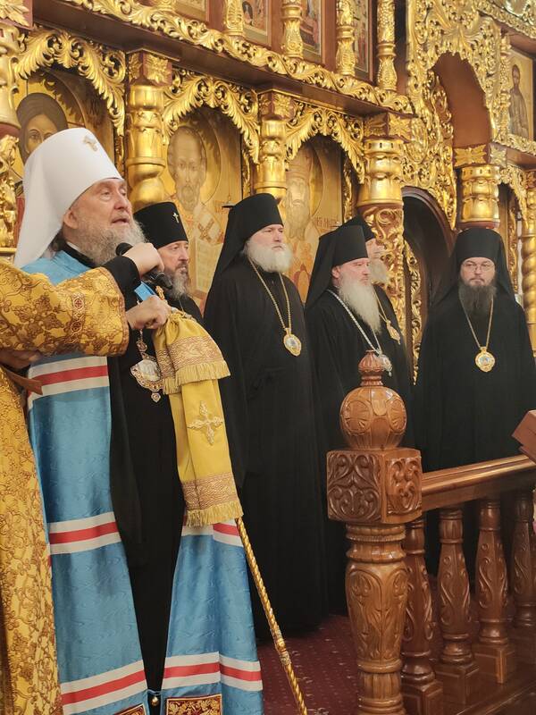 Никольский собор в 1946 году трудами митрополита Николая (Могилевского) был возвращен верующим и возрожден; здесь же, в южном приделе, почивают его святые мощи. Сегодняшняя Литургия совершалась на антиминсе, подписанном приснопамятным архипастырем в 1946 году, после возвращения Никольского храма верующим и его освящения.