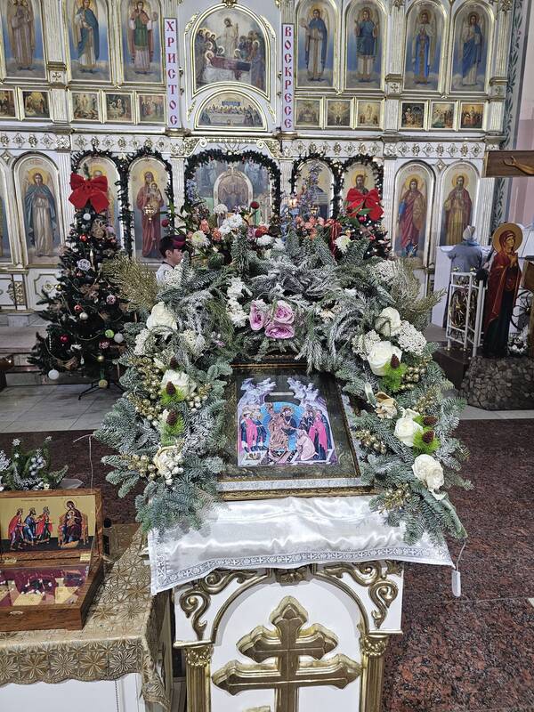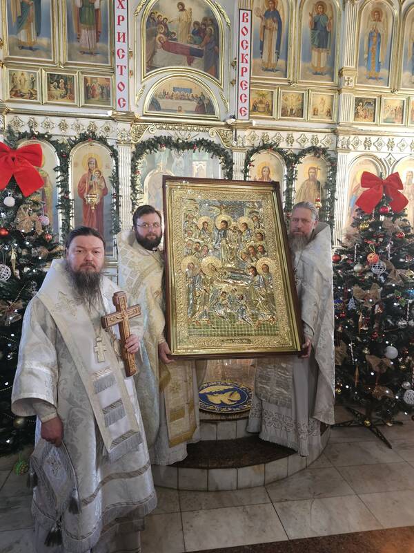 Его Преосвященство передал в дар кафедральному собору икону "Успения Божией Матери".