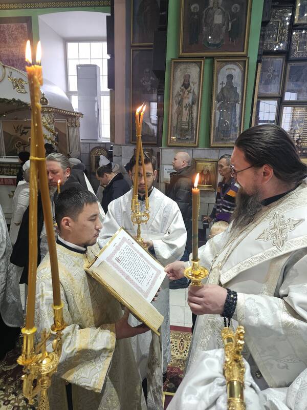 Его Преосвященство, Преосвященнейший Вианор, епископ Уральский и Атырауский, совершил Божественную Литургию, Великую вечерню и чин великого освящения воды в Свято-Успенском кафедральном соборе г.Атырау. Накануне Преосвященнейший владыка возглавил всенощное бдение и на Богослужении Утрени помазал молящихся освященным елеем.