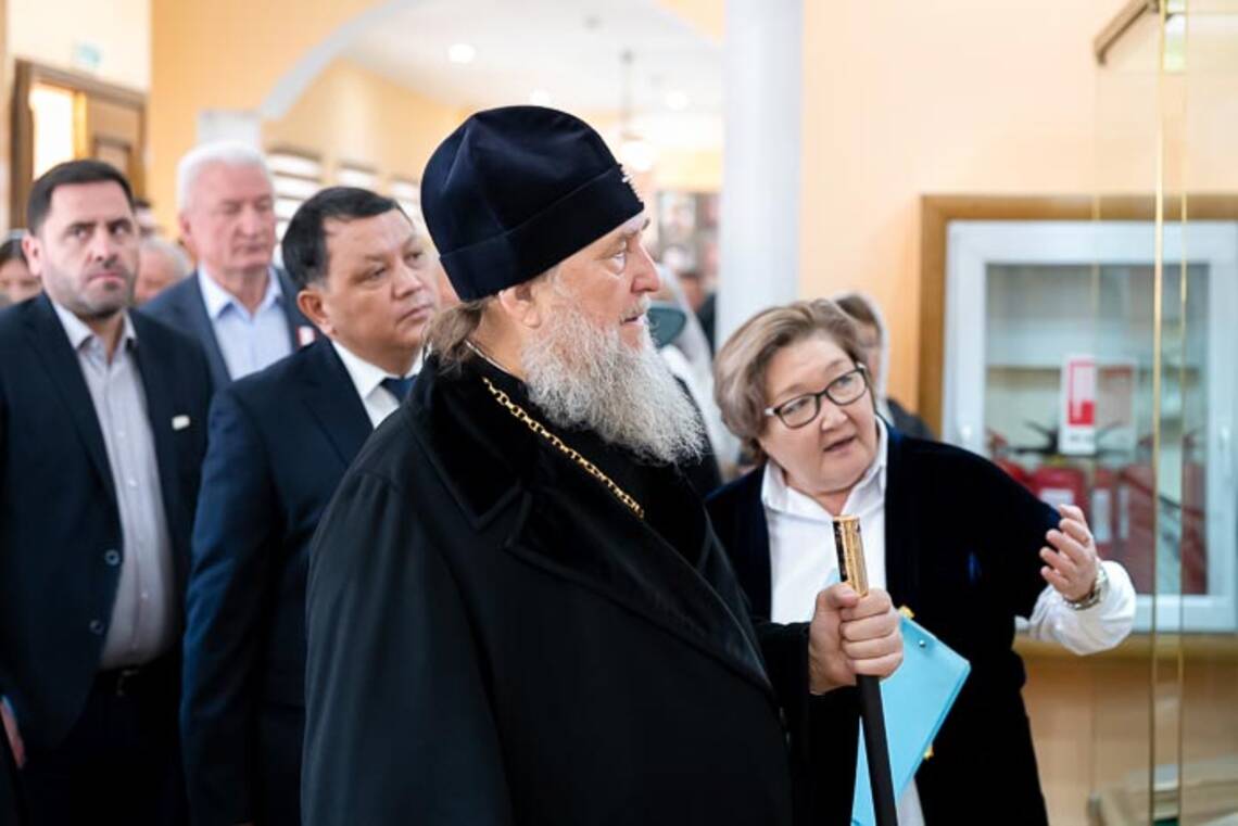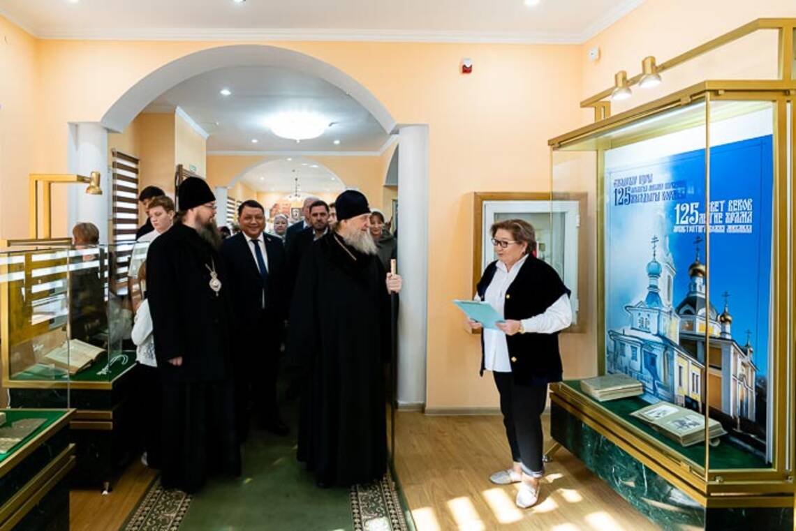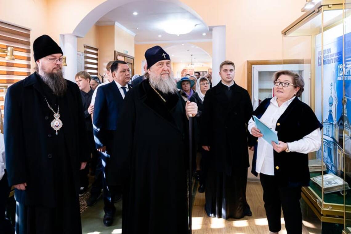 Митрополит Александр, сопровождающие его архипастыри и священнослужители ознакомились с экспонатами выставки, среди которых предметы быта казаков, богослужебная утварь, иконы, фотографии и документы.