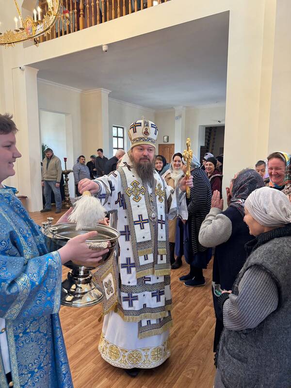 Владыка Вианор окропил молящихся освящённой водой.