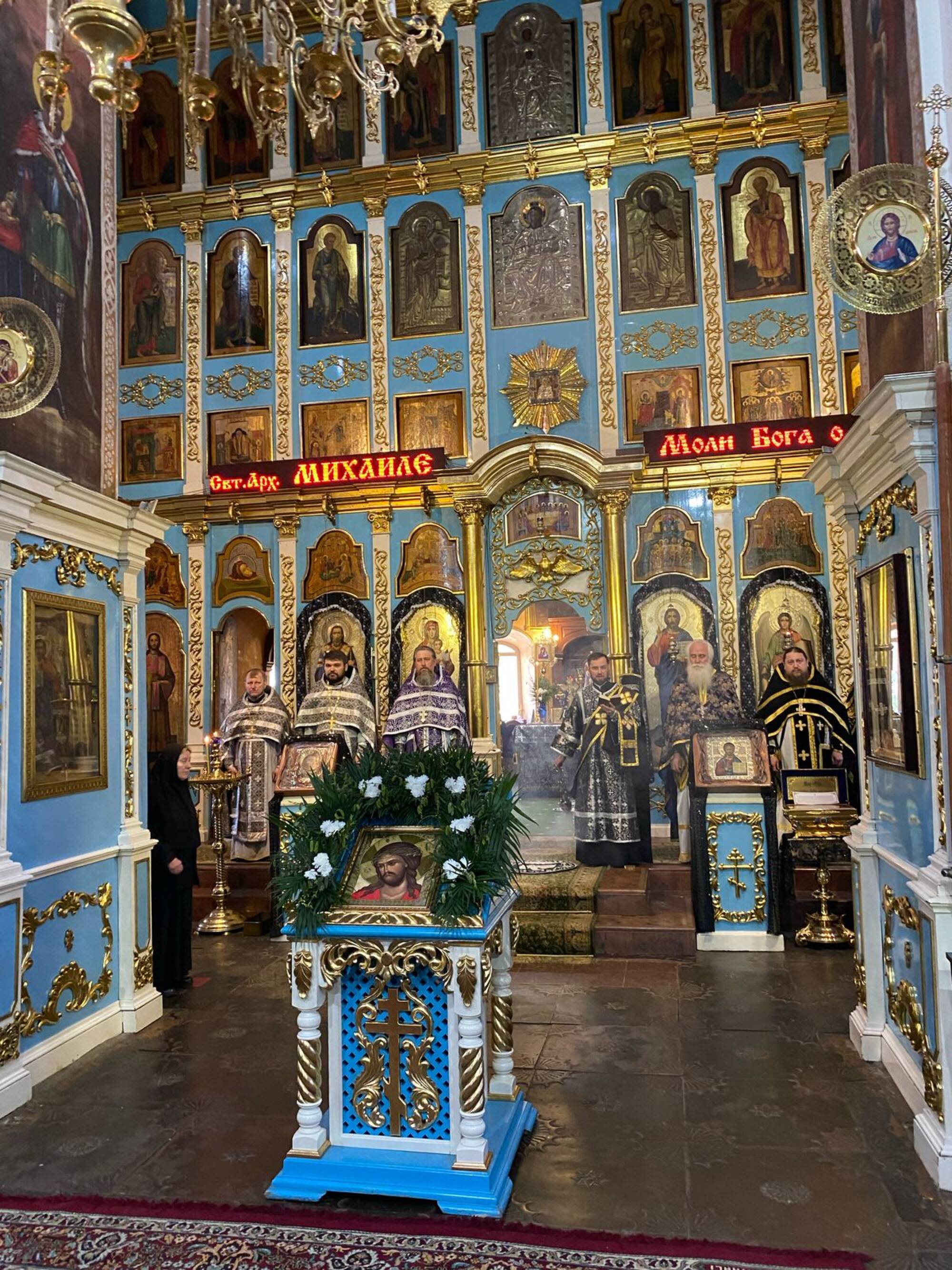 Его Преосвященству сослужили: настоятель кафедрального собора Михаила Архангелаг.Уральска архимандрит Феодосий (Курьянов), благочинный Уральского округа протоиерей Владимир Гарасим, ключарь кафедрального Свято-Успенского собора г.Атырау иеромонах Варфоломей (Мостовщиков), клирики собора: протоиерей Георгий Лемачко, иерей Алексий Потапов, иерей Андрей Александров, иеродиакон Арсений (Рыбальченко), диакон Владимир Лемачко, богослужебные песнопения исполнил архиерейский хор под управлением регента Ларисы Бондаревой.