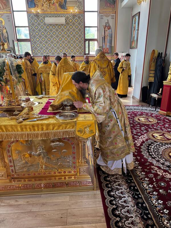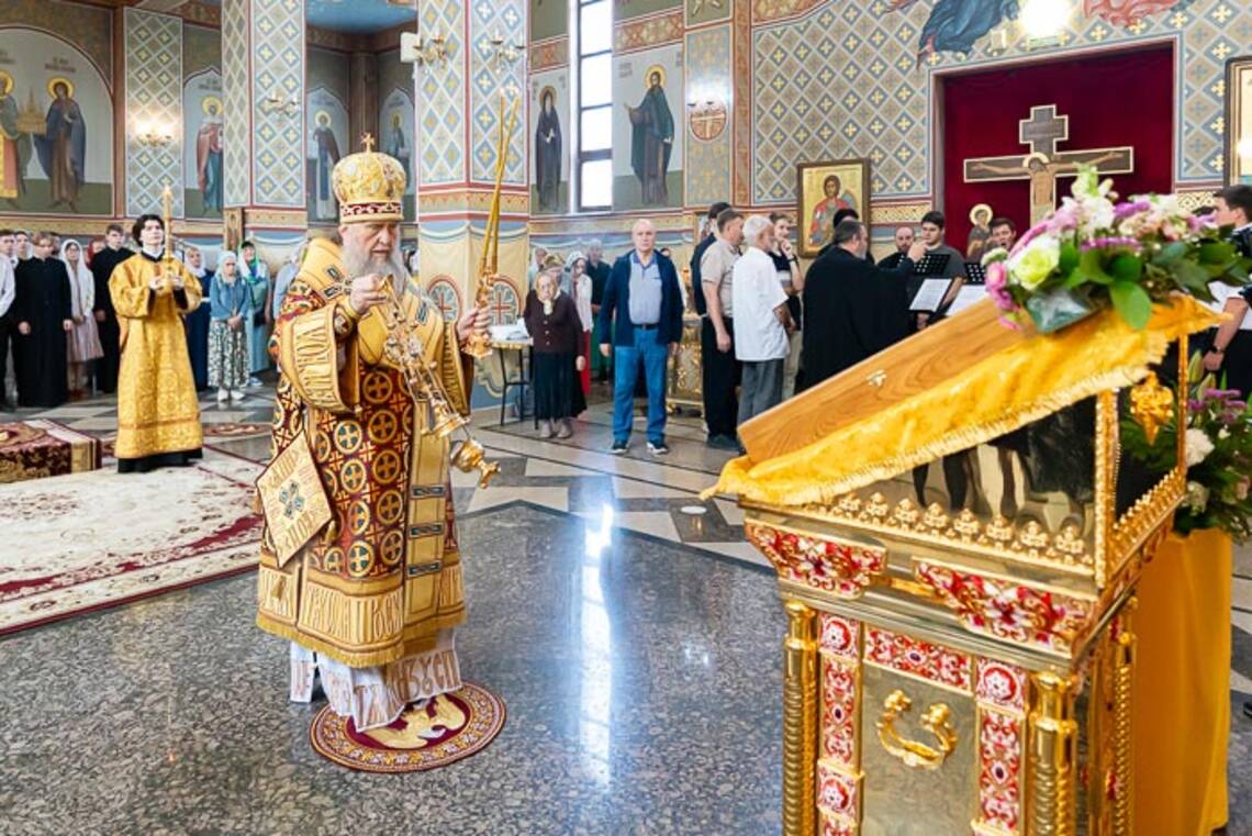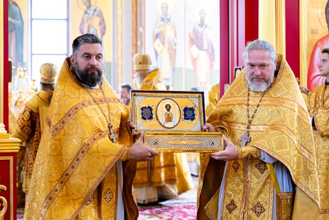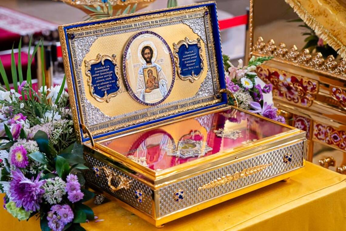 На богослужение в храм был доставлен ковчег с частицей святых мощей благоверного князя Александра Невского.