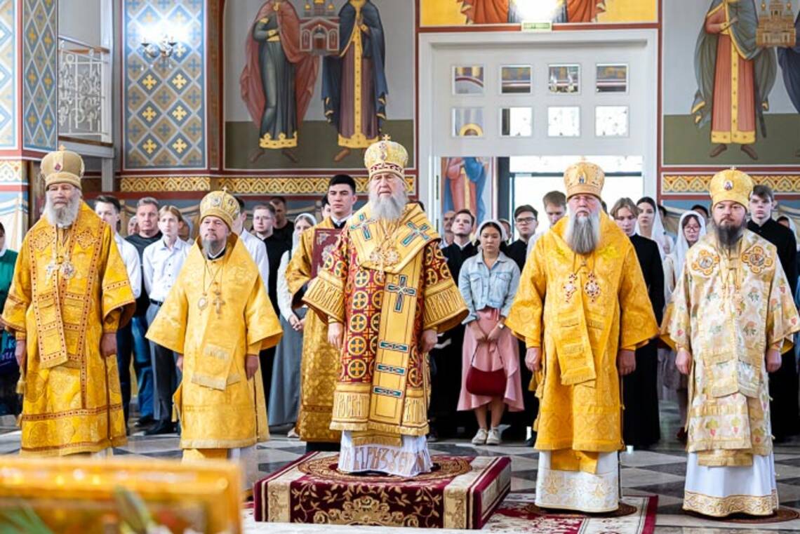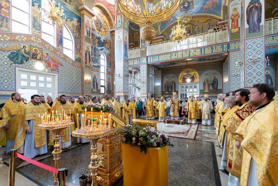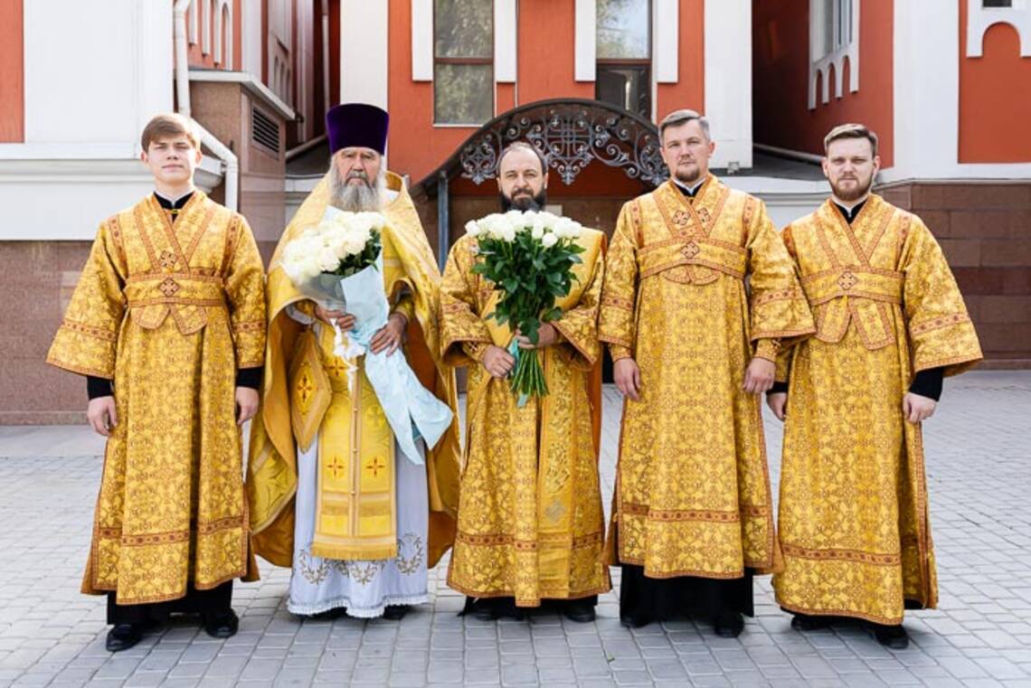 Главе Православной Церкви Казахстана сослужили: викарии Астанайской епархии – управляющий делами Казахстанского Митрополичьего округа епископ Каскеленский Геннадий, епископ Талдыкорганский Клавдиан и епископ Талгарский Вениамин; епископ Уральский и Атырауский Вианор; благочинный храмов Южной столицы, настоятель Никольского собора протоиерей Валерий Захаров; настоятель Михаило-Архангельского кафедрального собора Уральска архимандрит Феодосий (Курьянов); настоятель алма-атинского храма в честь иконы Божией Матери «Всех скорбящих Радость» протоиерей Евгений Воробьев; ключарь Вознесенского кафедрального собора, руководитель отдела Митрополичьего округа по связям с общественностью протоиерей Александр Суворов; ключарь Христорождественского собора протоиерей Александр Гайченя; благочинный Илийского церковного округа протоиерей Александр Зырянов; настоятель Иверского храма поселка Боролдай игумен Филарет (Петроченко); настоятель Александро-Невского храма протоиерей Иоанн Лопатин, настоятели и духовенство храмов Алма-Атинской епархии, руководители отделов Митрополичьего округа в священном сане; диаконский чин возглавил протодиакон Николай Гринкевич.