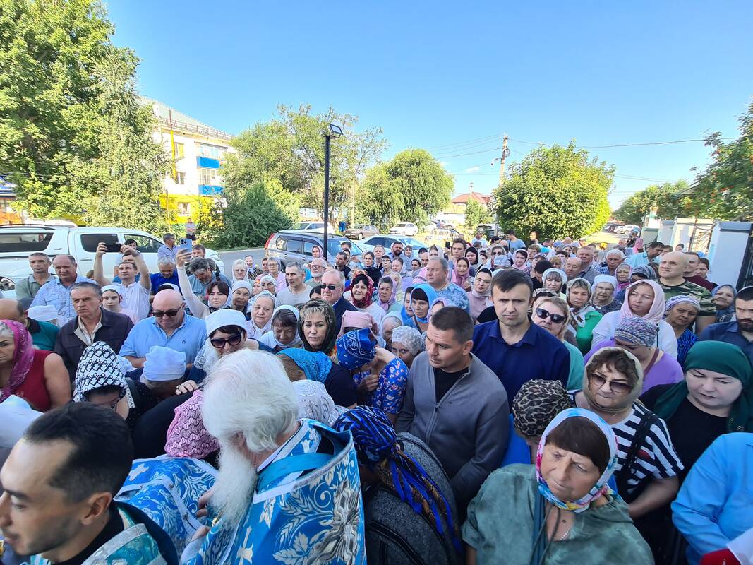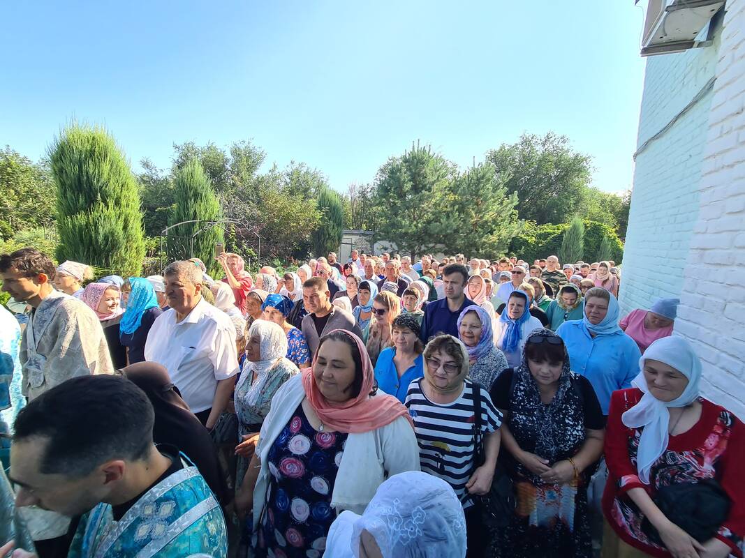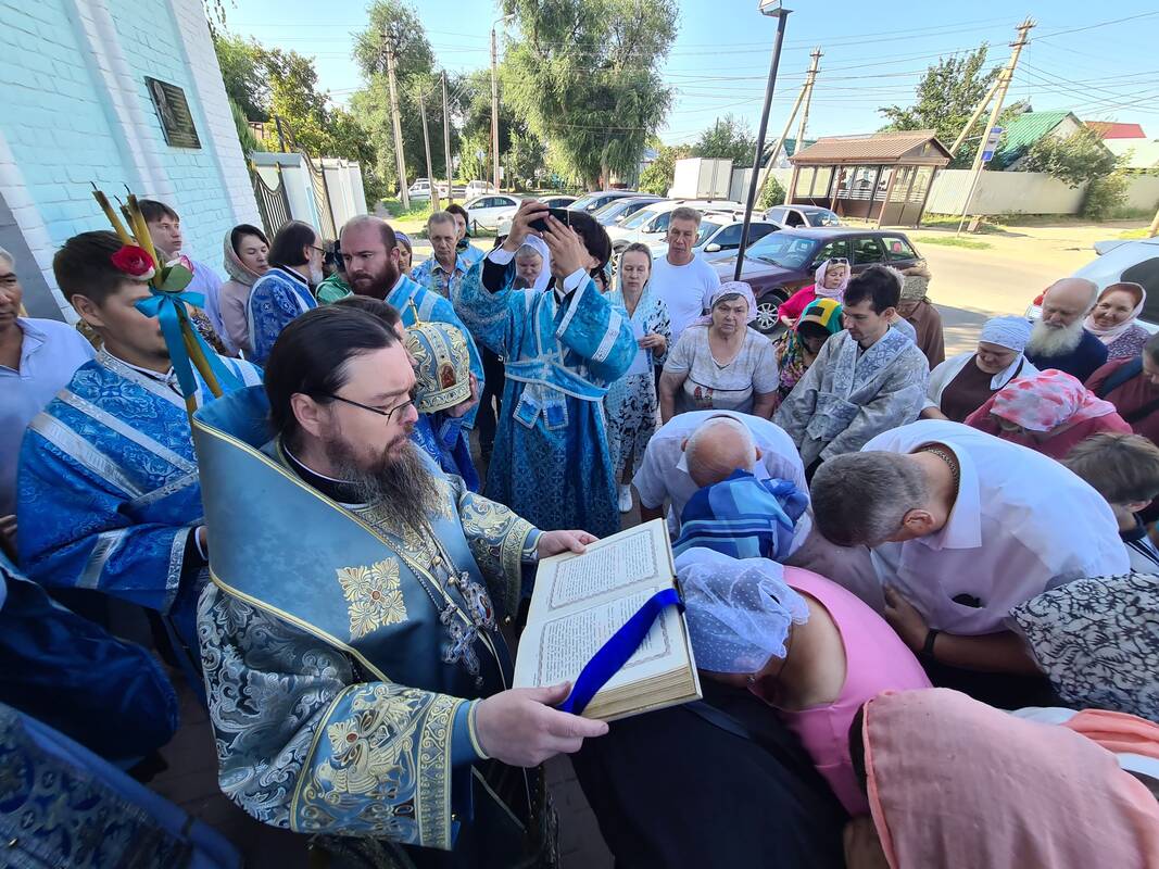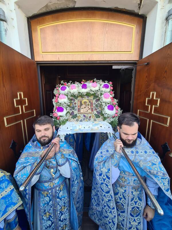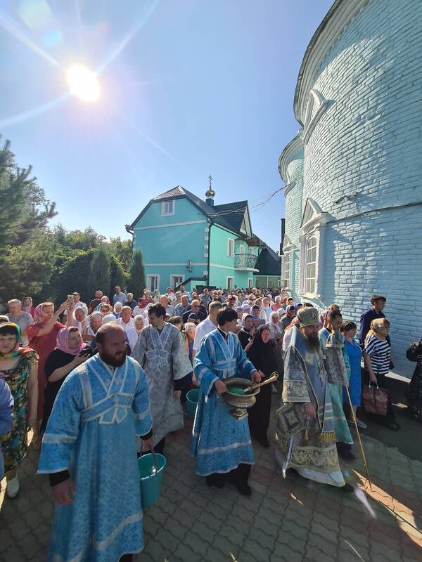 По заамвонной молитвы был совершен традиционный Крестный Ход с местночтимой иконой Божией Матери, именуемой "Одигитрия " Смоленская и владыка Вианор окропил молящихся освящённой водой.
