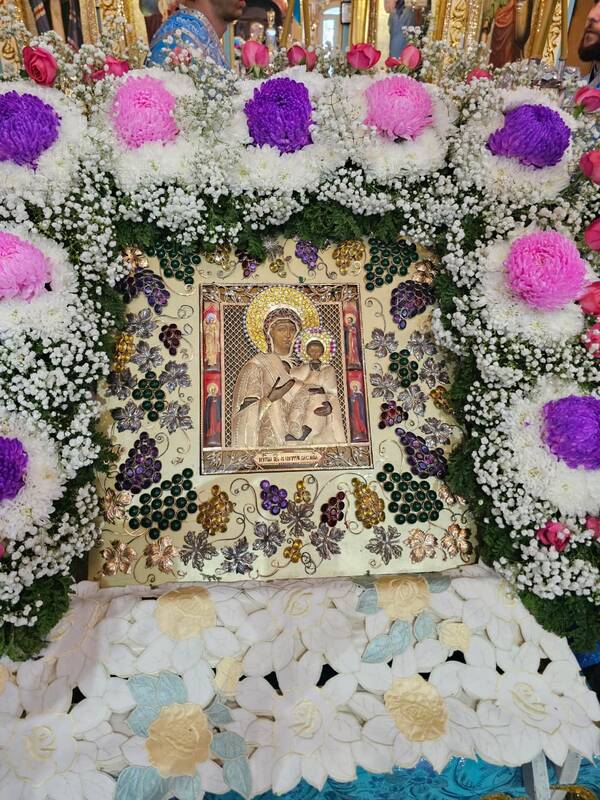 Его Преосвященство поздравил духовенство и многочисленных прихожан с праздником и в архипастырском слове рассказал о происхождении и чудесах, совершаемых пред Пречистым образом Богоматери "Одигитрия", образ Богоматери досточтимая копия, находится в нашем городе в кафедральном соборе и каждый год торжественно мы совершаем празднование в честь Пресвятой Богородицы.