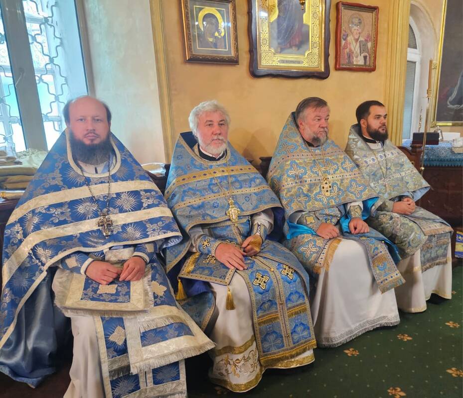 Управляющему Уральской и Атырауской епархии сослужили: настоятель кафедрального собора Михаила Архангела г.Уральска, архимандрит Феодосий (Курьянов), настоятель кафедрального собора Христа Спасителя г.Уральска, протоиерей Анатолий Робу, клирик Покровского женского монастыря г.Уральска, архимандрит Дионисий (Козулев), благочинный Уральского округа протоиерей Владимир Гарасим, настоятель Свято-Никольского храма г.Уральска, игумен Илия (Данилейко), ключарь кафедрального собора Михаила Архангела г.Уральска, протоиерей Георгий Лемачко, клирик кафедрального собора Михаила Архангела г.Уральска, иерей Андрей Александров, клирик кафедрального собора Христа Спасителя г.Уральска, протодиакон Иоанн Рошка, клирики кафедрального собора Михаила Архангела г.Уральска, иеродиакон Арсений (Рыбальченко), диакон Владимир Лемачко.