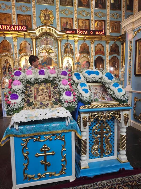 Его Преосвященство, Преосвященнейший Вианор, епископ Уральский и Атырауский, совершил Божественную Литургию в кафедральном соборе Михаила Архангела г.Уральска. Накануне владыка Вианор возглавил всенощное бдение и на богослужении Утрени совершил молебное пение с акафистом Пресвятой Богородице, помазав молящихся освященным елеем.