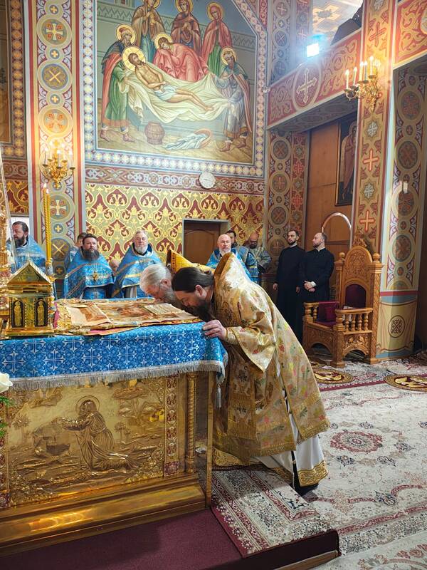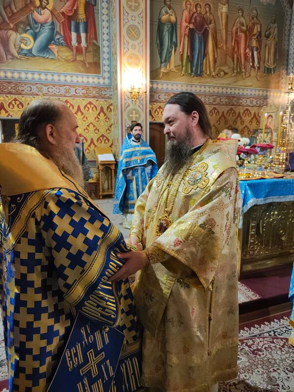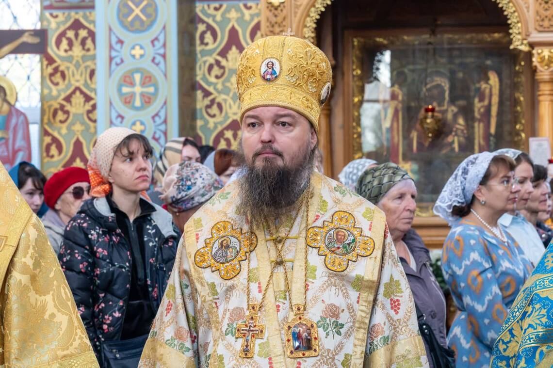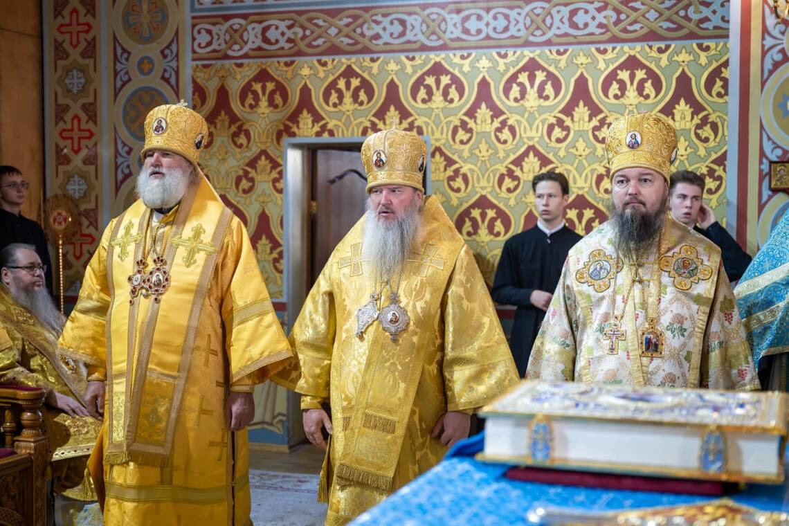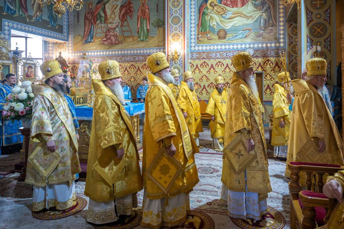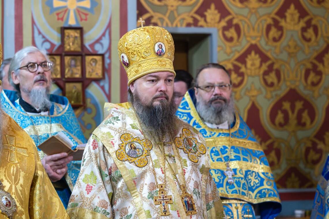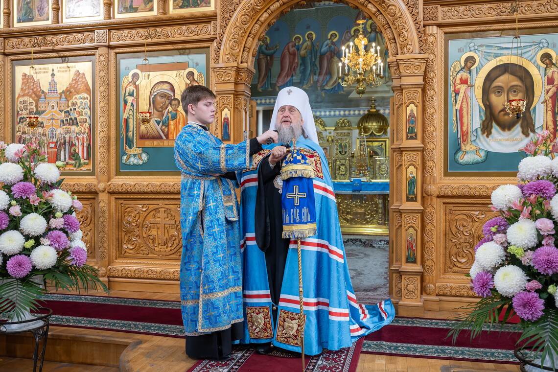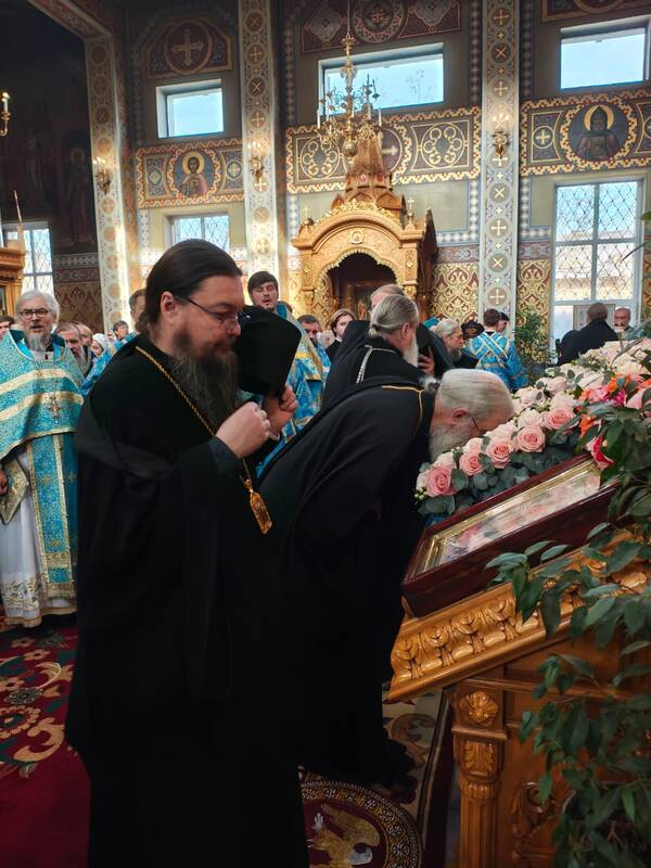 Литургия завершилась славлением Пресвятой Богородице перед ковчегом с Ее честным Поясом и Иверским образом Царицы Небесной, а также литией у гробницы митрополита Иосифа (Чернова), после чего митрополит Александр поздравил епископов, матушек игумений, духовенство и прихожан с престольным праздником и обратился к верующим со словами архипастырской проповеди.