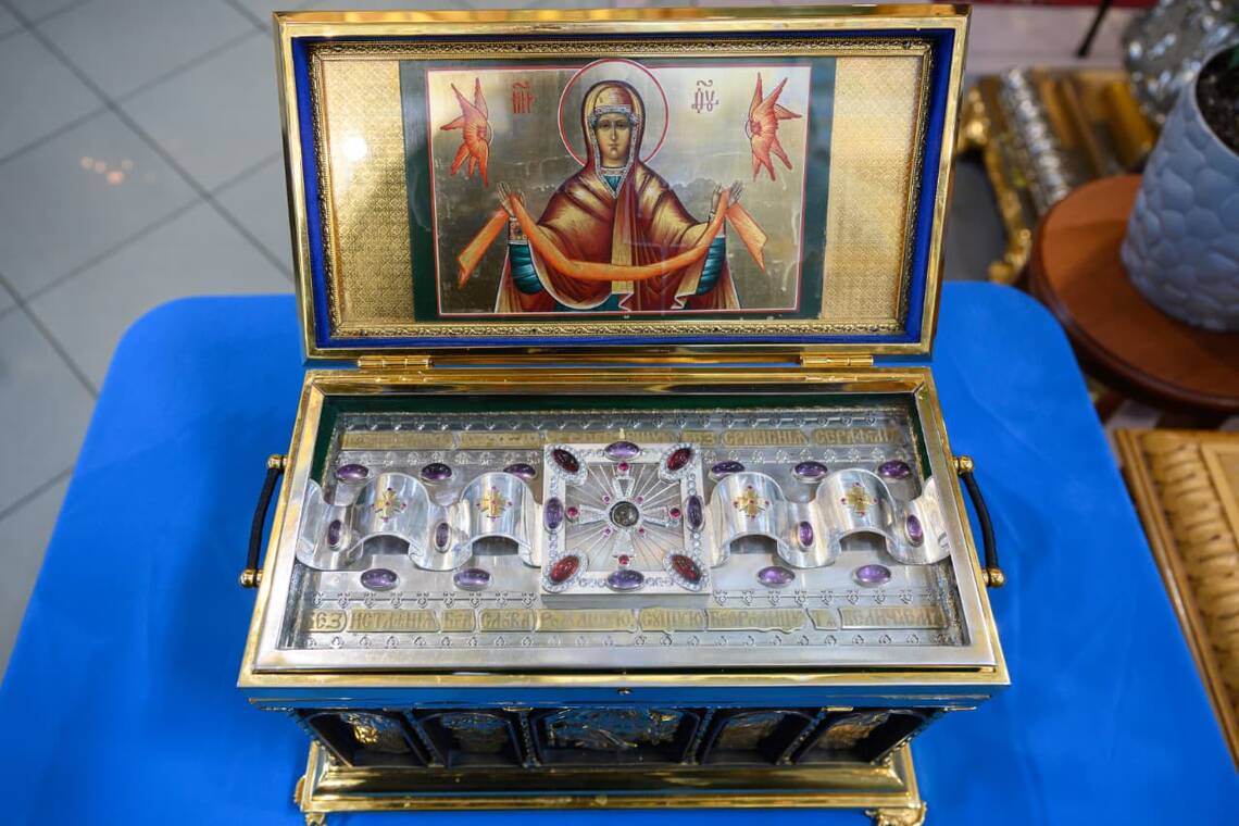 К началу богослужения в Софийский собор для молитвенного поклонения и духовного укрепления верующих был доставлен ковчег с великой православной святыней – частью Пояса Пресвятой Богородицы, хранящийся в домовом Иверско-Серафимовском храме митрополичьей резиденции в Алма-Ате.