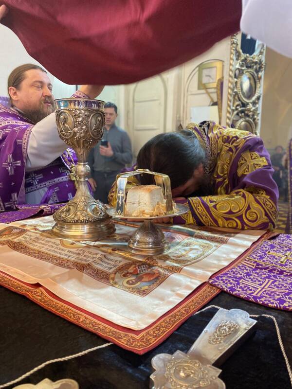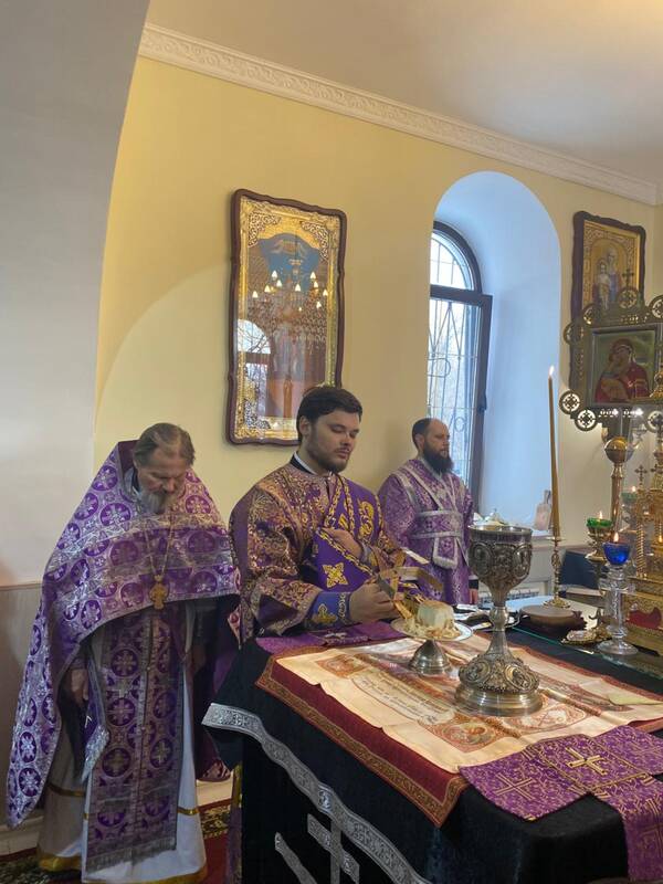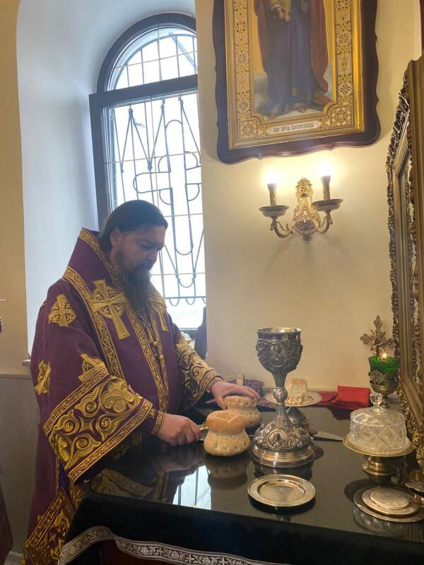 На сугубой заупокойной ектении архипастырь вознес молитву об упокоении новопреставленного Святейшего и Блаженнейшего Католикоса-Патриарха всея Грузии Илии II и об архиепископе Антонии (Москаленко) и всех преждепочивших отцех и братий здесь лежащих и повсюду православных христиан.