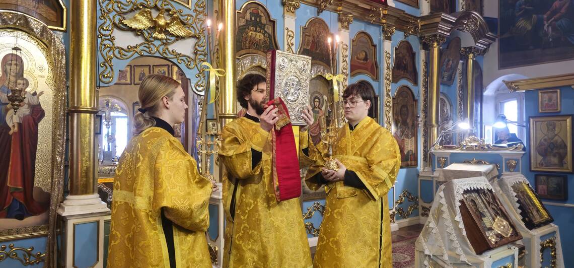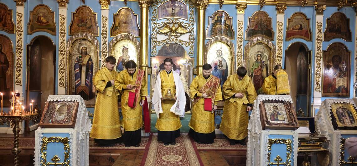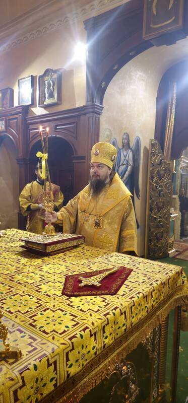 Песнопения богослужения исполнял архиерейский хор под управлением регента Ларисы Бондаревой.