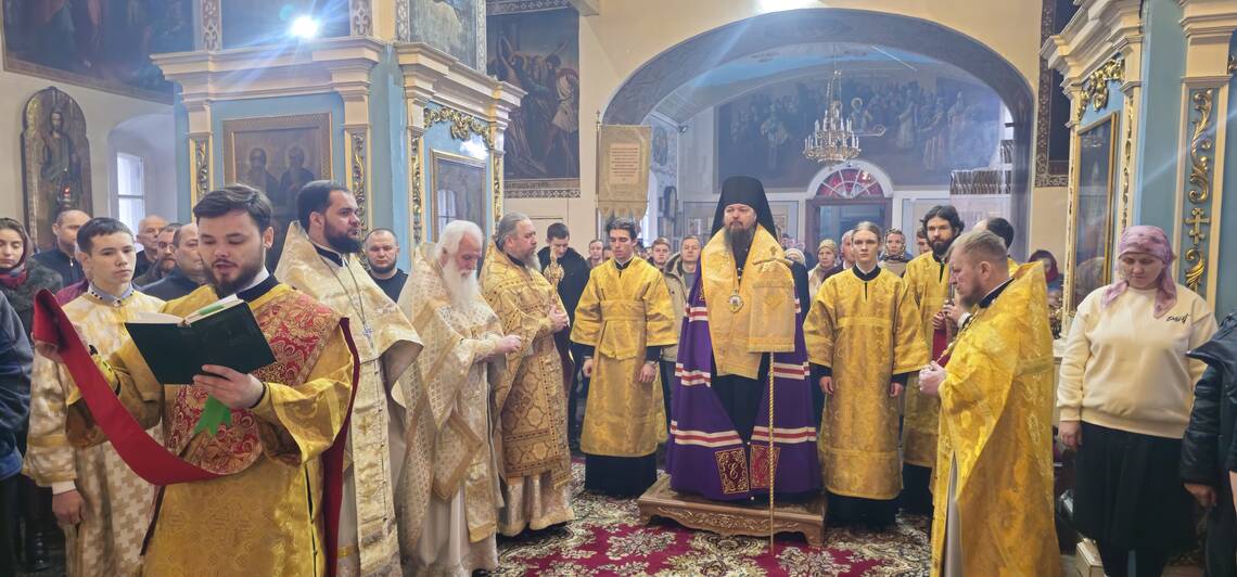 Его Преосвященство, Преосвященнейший Вианор епископ Уральский и Атырауский совершил Божественную литургию в кафедральном соборе Михаила Архангела г.Уральска. Накануне, Его Преосвященство совершил всенощное бдение и помазал молящихся освященным елеем. За вечернем богослужении впервые в текущем церковном году прозвучали великопостные тропари: «Покаяния отверзи ми двери, Жизнодавче».