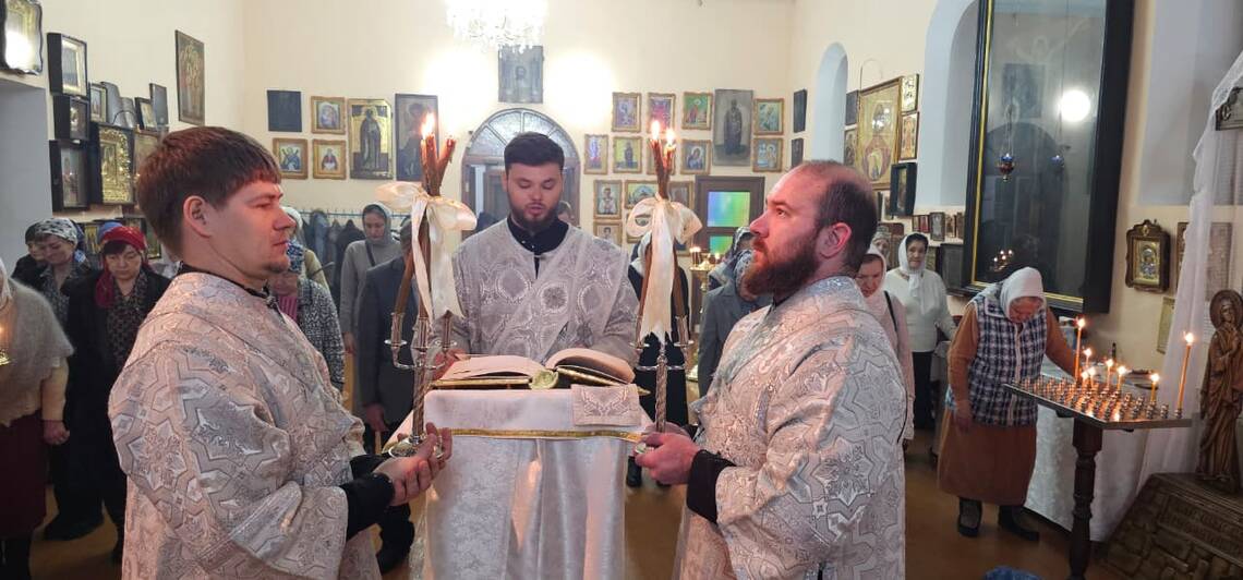 Песнопения богослужения исполнял хор под управлением регента Анны Саломахиной.