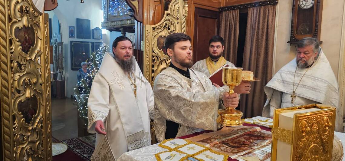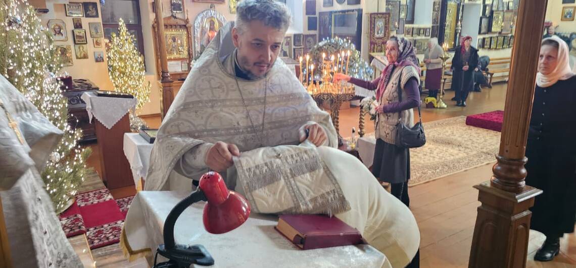 По запричастном стихе Рождественское послание Управляющего Уральской и Атырауской епархией зачитал протоиерей Георгий Лемачко.