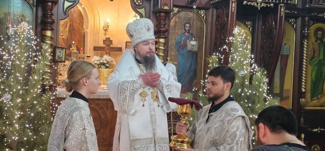 Его Преосвященство обратился с архипастырским словом и поздравил духовенство и прихожан с Великим праздником Рождества Христова .