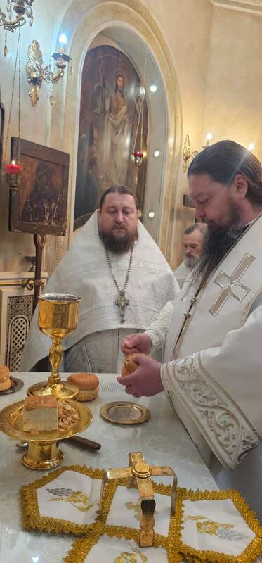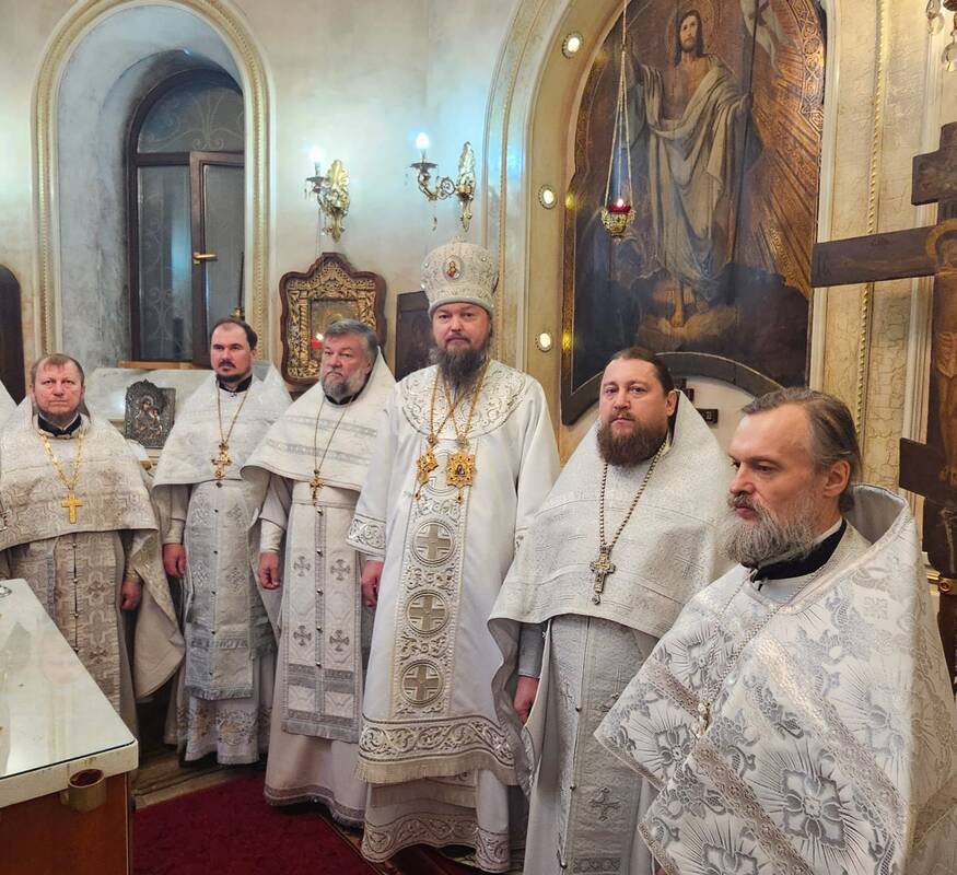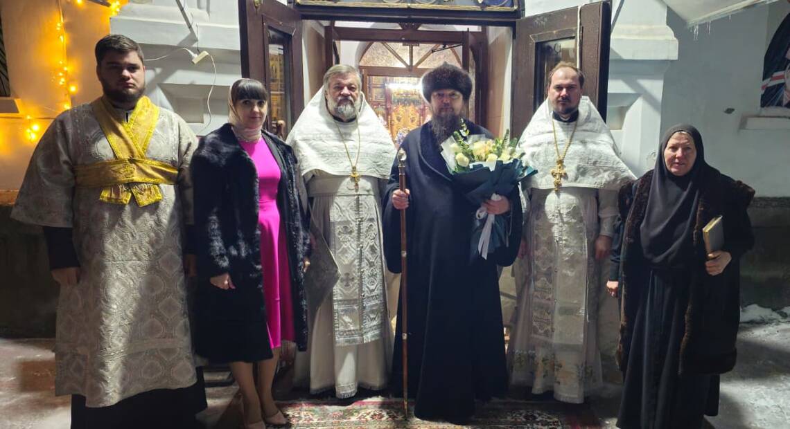 Его Преосвященству сослужили: благочинный Уральского округа протоиерей Владимир Гарасим, настоятель Свято-Никольского храма г.Уральска, игумен Илия (Данилейко), руководитель информационного отдела Уральской епархии игумен Дорофей (Дильманаев), благочинный Приурального округа протоиерей Василий Кроитор, клирик кафедрального собора Михаила Архангела г.Уральска, протоиерей Георгий Лемачко, настоятель храма Трёх Святителей п. Чапаево, иерей Алексий Потапов, клирик Свято-Никольского храма г.Уральска, иерей Вячеслав Стороженко, клирик кафедрального собора Михаила Архангела г.Уральска диакон Владимир Лемачко.