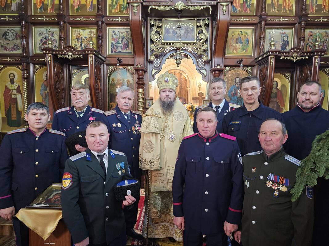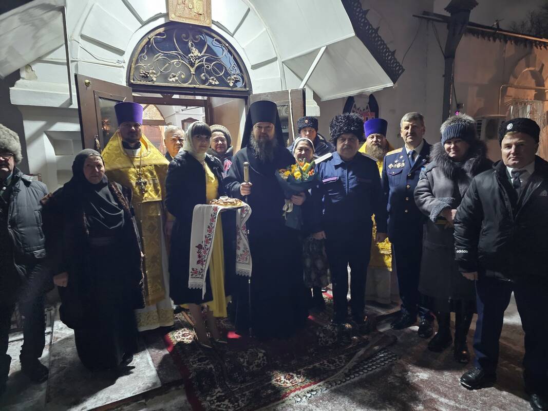 Его Преосвященству сослужили: настоятель кафедрального собора Михаила Архангела г.Уральска, архимандрит Феодосий (Курьянов), настоятель кафедрального собора Христа Спасителя г.Уральска, протоиерей Анатолий Робу, настоятель Свято-Никольского храма г.Уральска, игумен Илия (Данилейко), благочинный Уральского округа протоиерей Владимир Гарасим, благочинный Приурального округа протоиерей Василий Кроитор, руководитель информационного отдела Уральской епархии игумен Дорофей (Дильманаев), клирик кафедрального собора Михаила Архангела г.Уральска, протоиерей Георгий Лемачко, клирик кафедрального собора Христа Спасителя г.Уральска, протодиакон Иоанн Рошка.