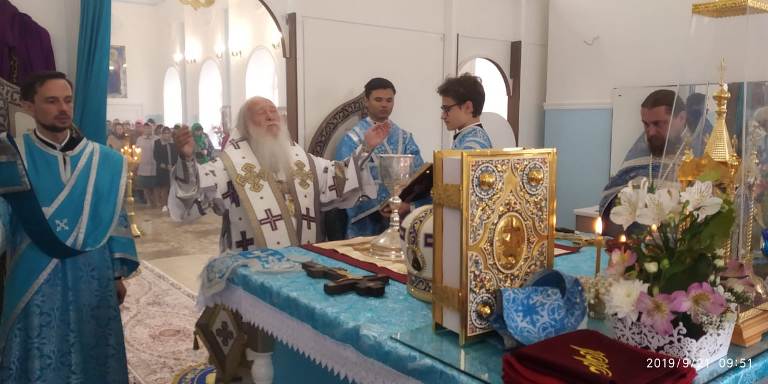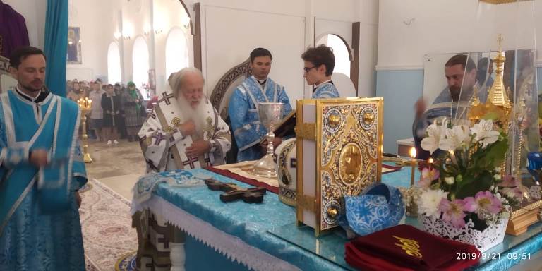 В праздник Рождества Пресвятой Богородицы архиепископ Антоний совершил Литургию в храме Рождества Пресвятой Богородицы в п. Переметное.