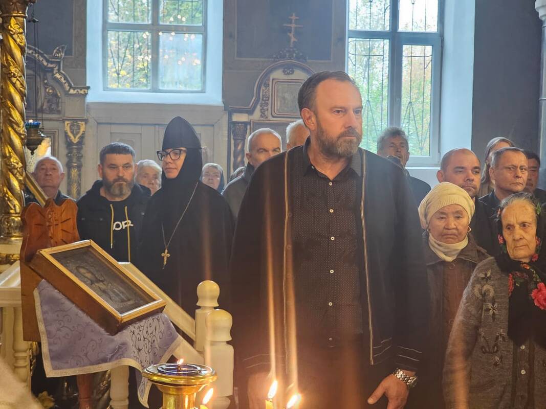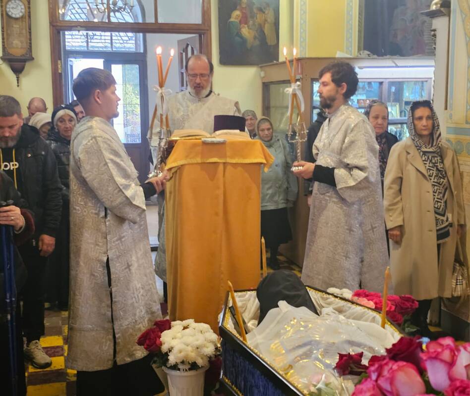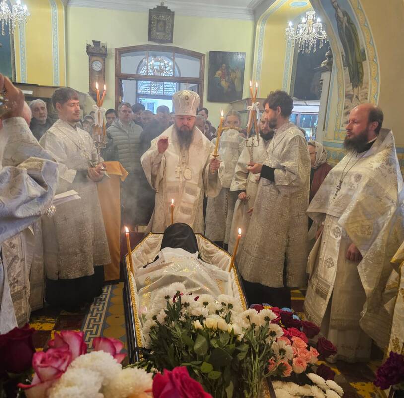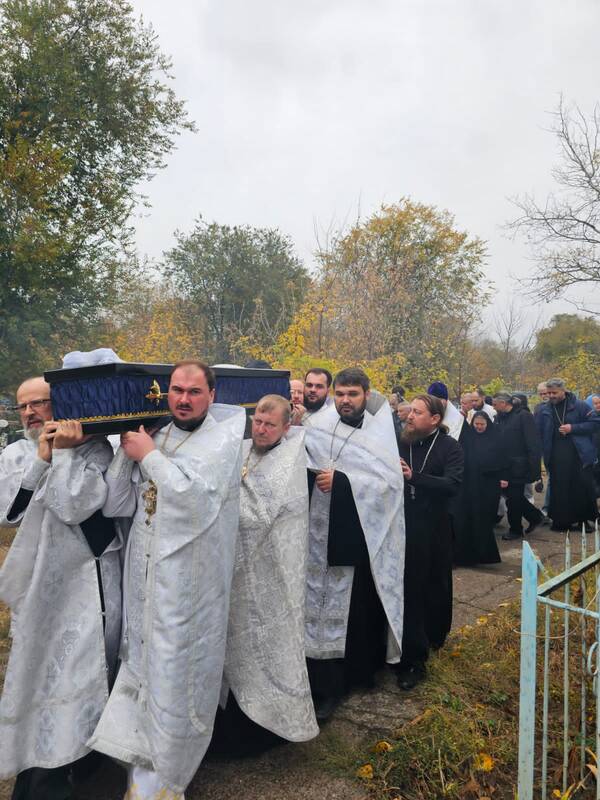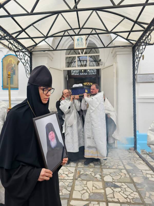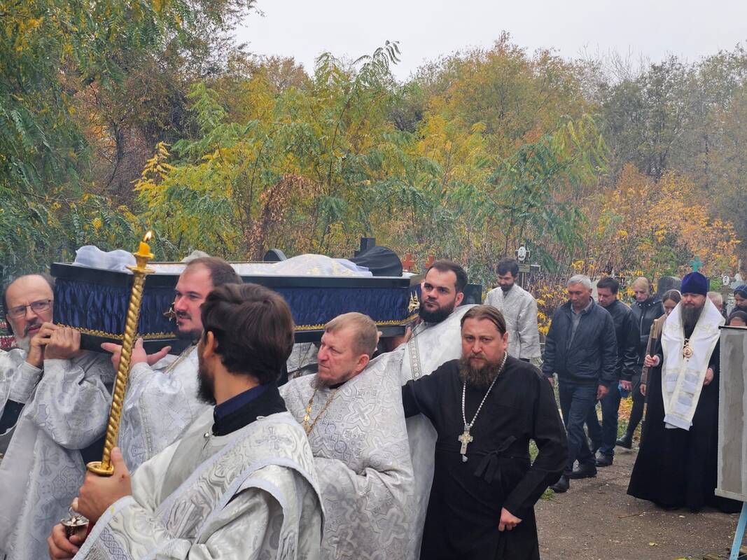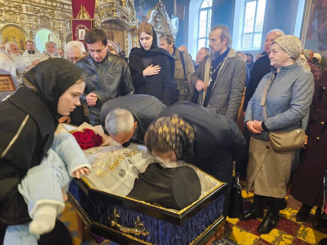 После отпевания гроб с телом крестным ходом обнесли вокруг храма.