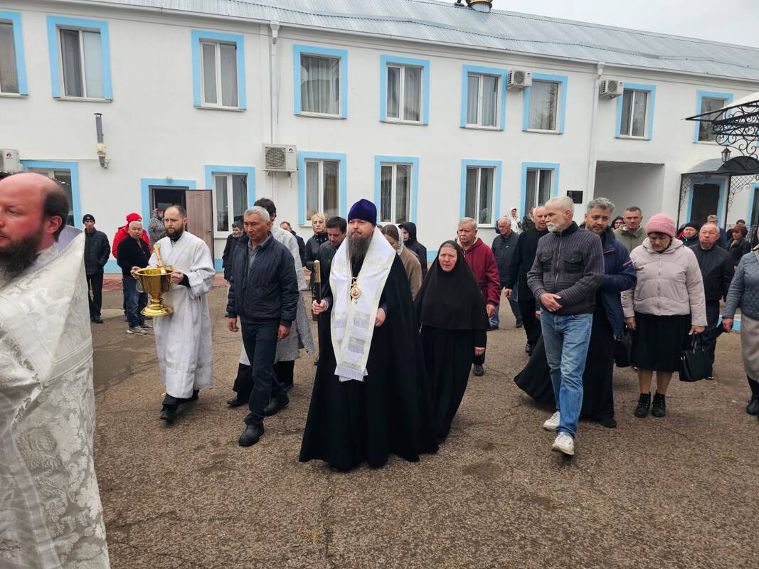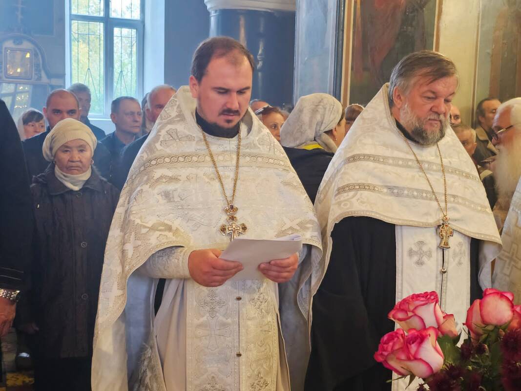 Его Преосвященству сослужили: настоятель кафедрального собора Михаила Архангела г.Уральска, архимандрит Феодосий (Курьянов), настоятель кафедрального собора Христа Спасителя г.Уральска, протоиерей Анатолий Робу, благочинный Уральского округа протоиерей Владимир Гарасим, благочинный Приурального округа, протоиерей Василий Кроитор, клирик Покровского женского монастыря г.Уральска, архимандрит Дионисий (Козулев), настоятель Свято-Никольского храма г.Уральска, игумен Илья (Данилейко), клирик Спасо-Преображенского храма г. Уральска, протоиерей Александр Пушин, клирик Кафедрального собора Христа Спасителя г.Уральска, протодиакон Иоанн Рошка, клирик кафедрального собора Михаила Архангела г.Уральска, иеродиакон Арсений (Рыбальченко), клирик кафедрального собора Михаила Архангела г.Уральска, диакон Владимир Лемачко. По прочтении Святого Евангелия в чине отпевания архипастырь прочитал разрешительную молитву над почившим священнослужителем.