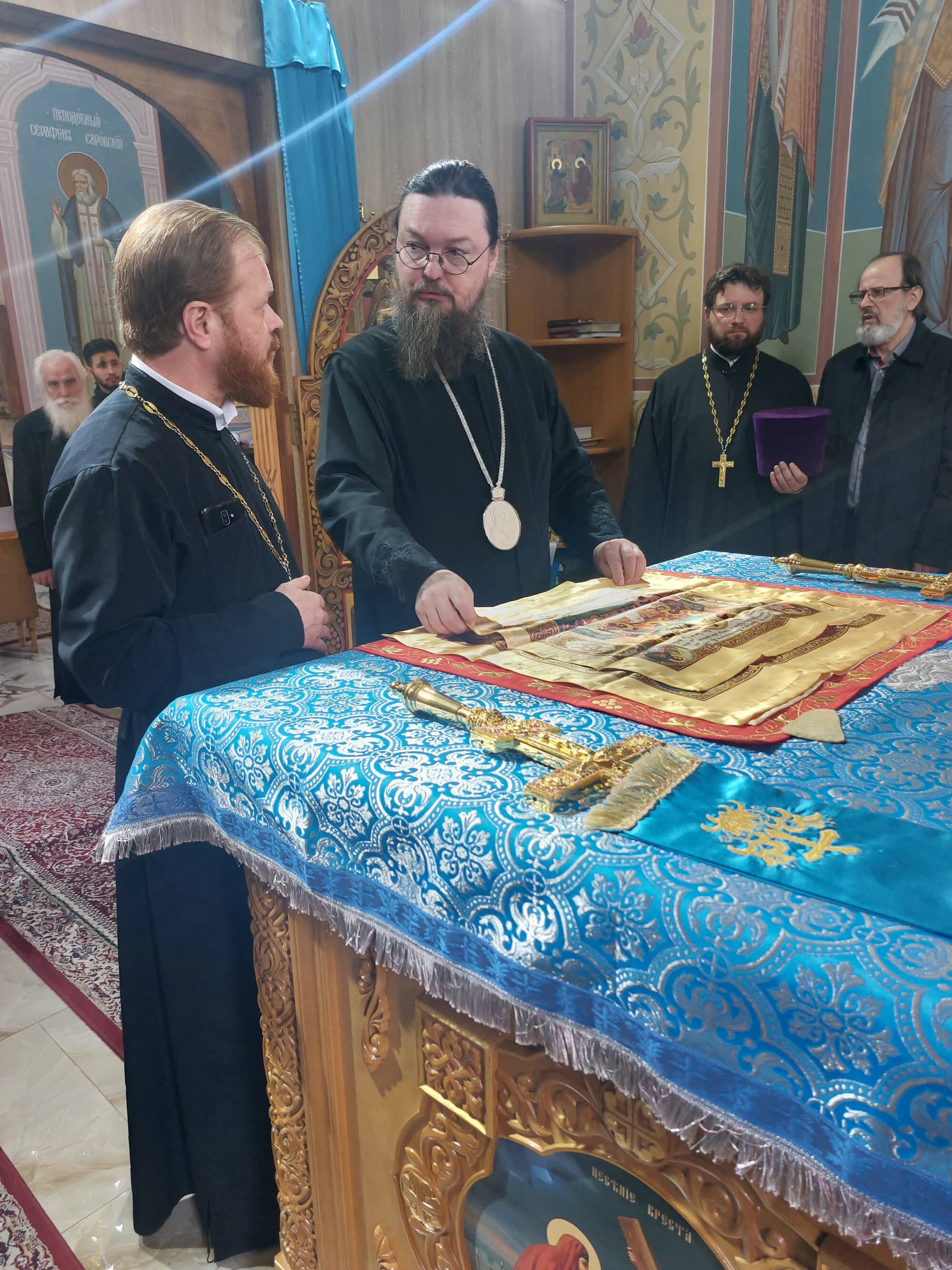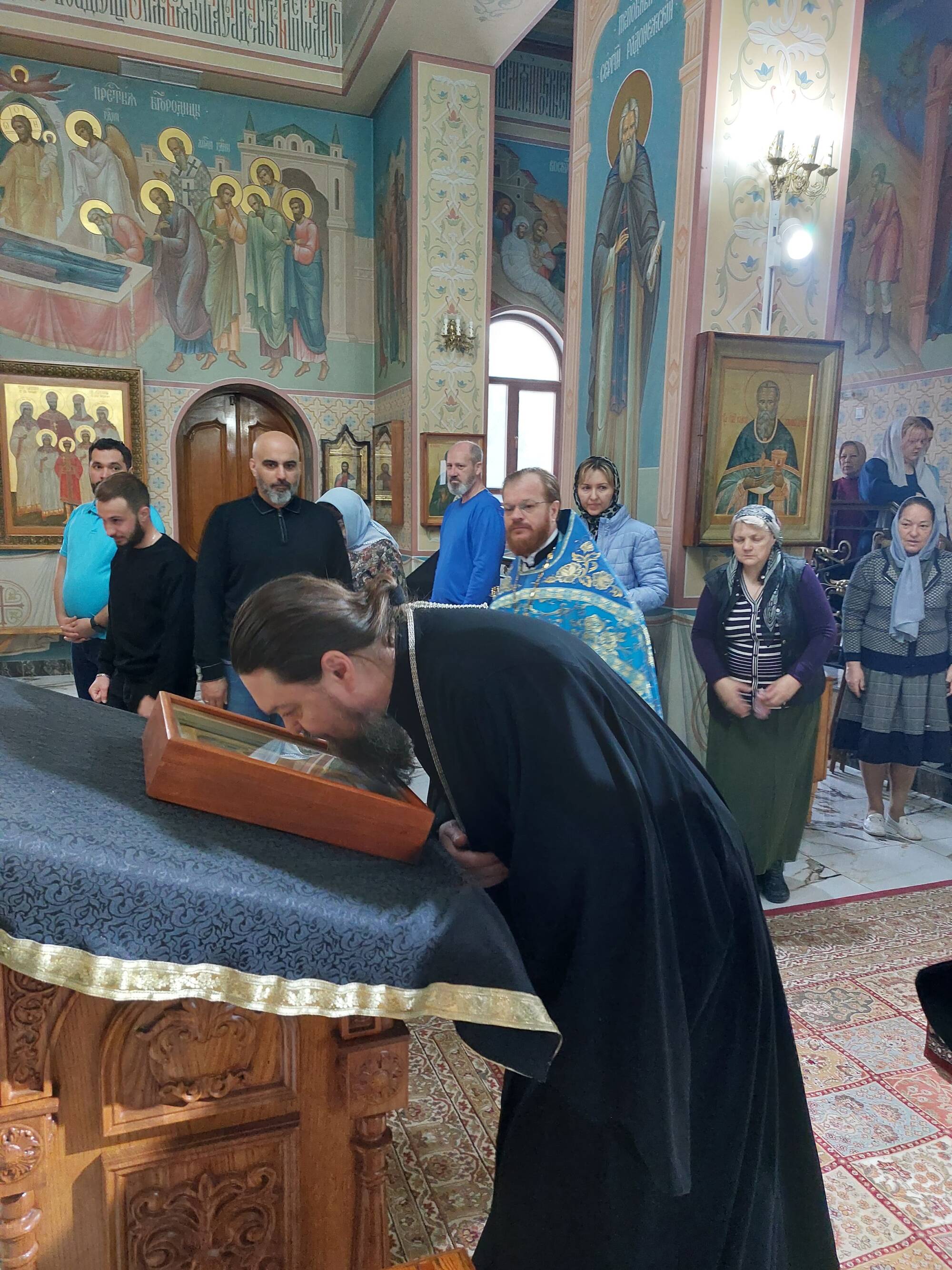 По прилете в аэропорт г.Актау управляющего Уральской епархией встретил настоятель Благовещенского храма г.Актау протоиерей Сергий Понич.