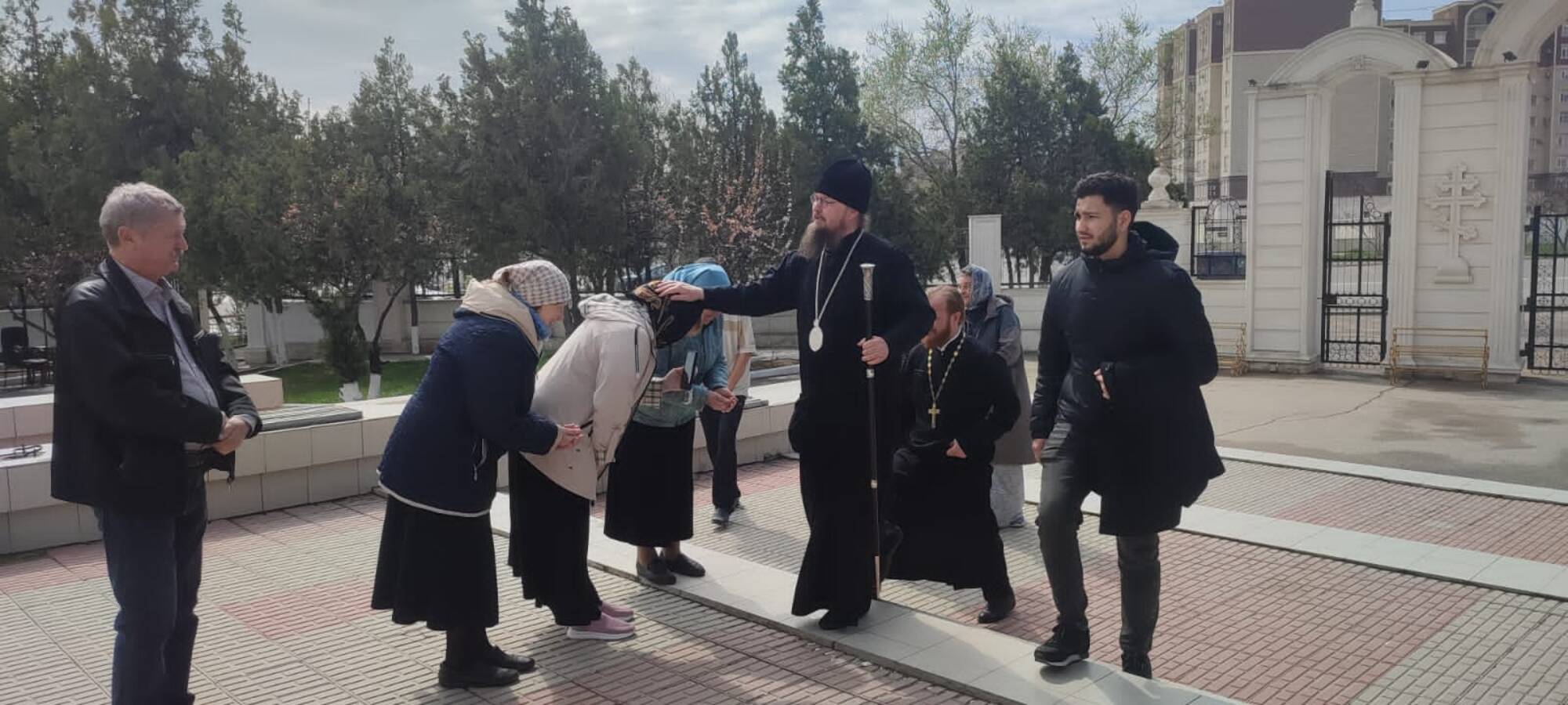 За Божественной Литургией настоятель Благовещенского храма г.Актау протоиерей Сергий Понич прочитал молитву об умножении любви и искоренении всякой ненависти и злобы.