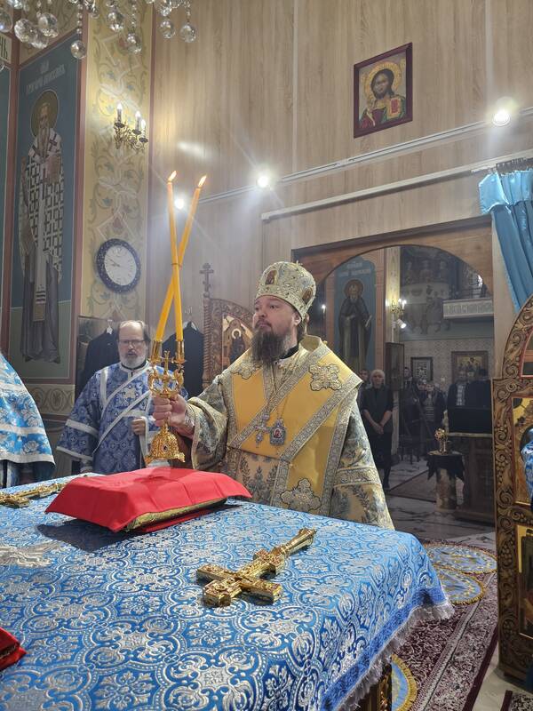 Его Преосвященство, Преосвященнейший Вианор, епископ Уральский и Атырауский, совершил Божественную Литургию Святителя Иоанна Златоустаго в Благовещенском храме г.Актау.