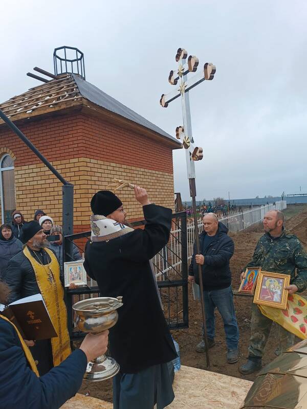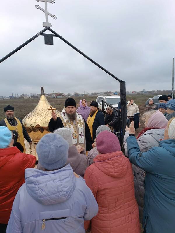 Управляющий Уральской и Атырауской епархией, Преосвященнейший епископ Вианор в день памяти великомученика Димитрия Солунского совершил молебное пение и освятил крест и купол в новостроящейся часовне в п. Достык (РТС).