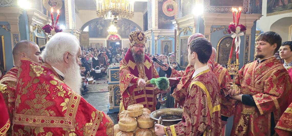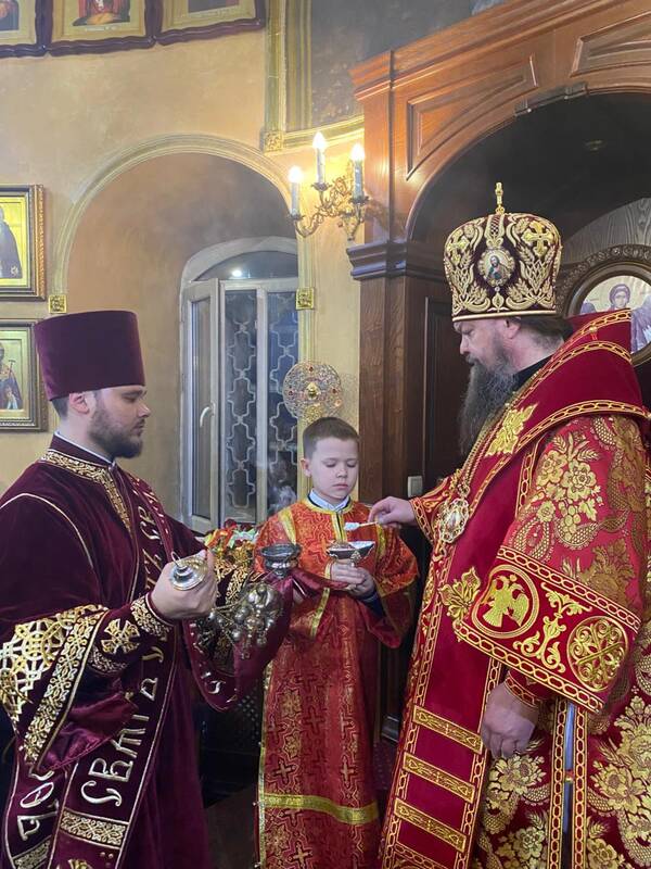 Богослужебные песнопения исполнил архиерейский хор под управлением регента Ларисы Бондаревой.