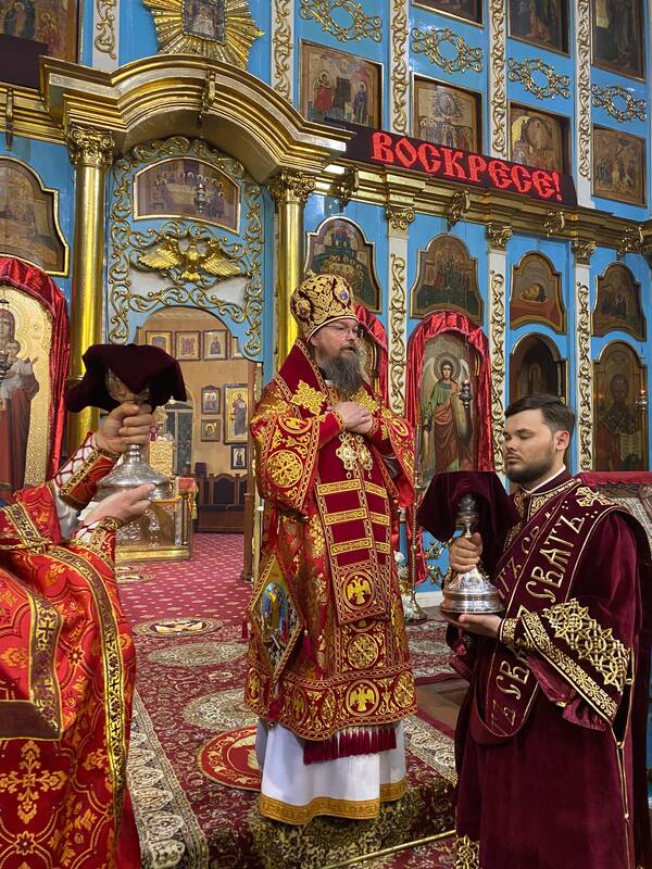 Его Преосвященство, Преосвященнейший Вианор епископ Уральский и Атырауский совершил пасхальную Утреню и Божественную литургию Святителя Иоанна Златоустаго в кафедральном соборе Михаила Архангела г.Уральска.