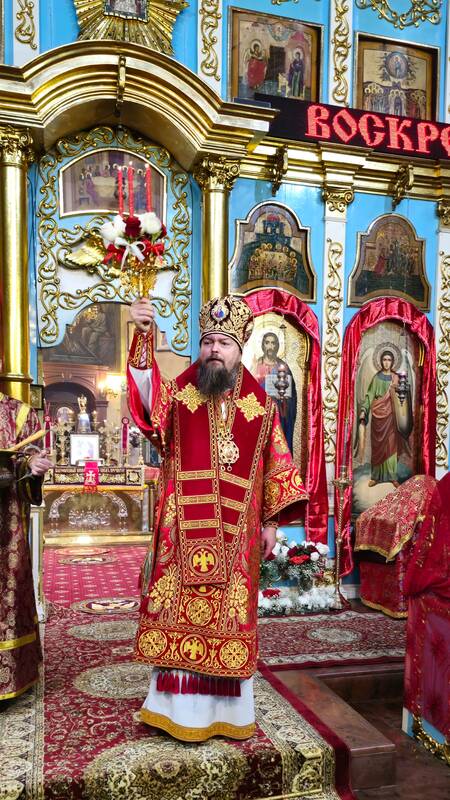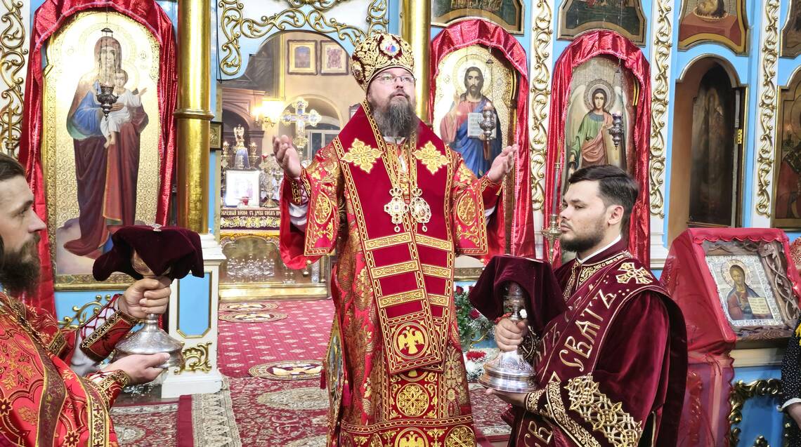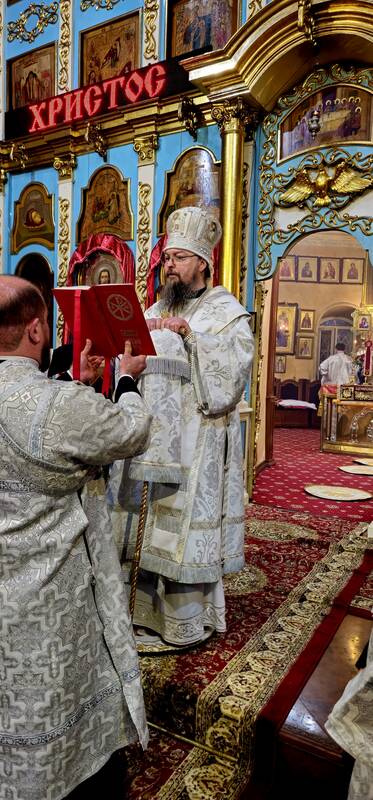 Его Преосвященству сослужили: настоятель кафедрального собора Михаила Архангела г.Уральска архимандрит Феодосий (Курьянов), клирики кафедрального собора: протоиерей Георгий Лемачко, иерей Андрей Александров, клирик кафедрального собора Христа Спасителя г.Уральска, иерей Анатолий Гиляшев, диакон Владимир Лемачко.