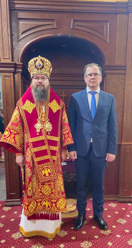 За праздничным богослужением молился генеральный консул Российской Федерации в городе Уральске, Грубый Алексей Валентинович.